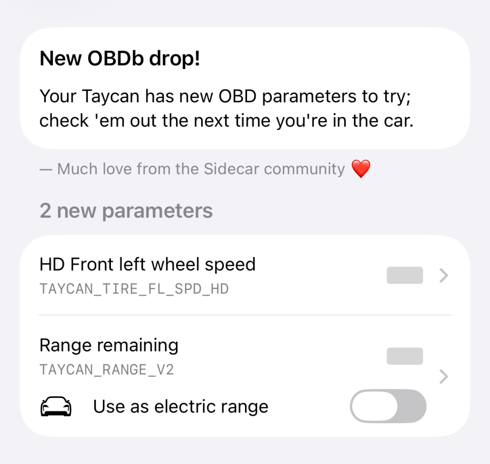 Over the past few weeks we’ve been trialing a new automatic-onboarding process that may have caused you to get more onboarding notifications than you would have preferred. In this new release, you’ll now only get notifications when new parameters are available, and if you tap the notification you can get a preview of exactly which parameters were added to your vehicle.