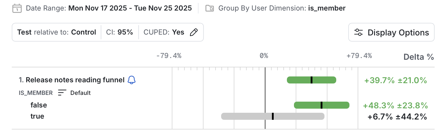 Digging into the results a bit more it’s also interesting to see that the effect is strongest among non-members, with ~48% of non-members being more likely to read the full notes vs only ~6.5% of members.