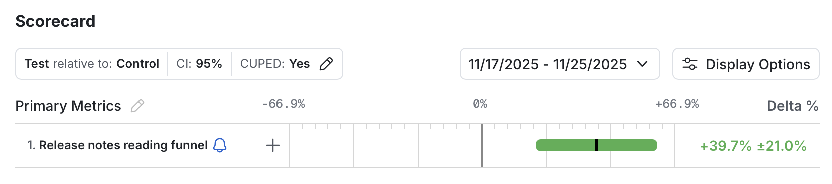 I created a simple ratio metric that measures the % of drivers who scroll to the bottom of the content and ran the experiment for about a week.